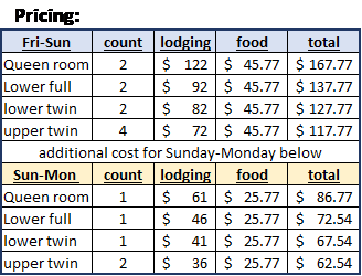 Price: Varies with bed choice and length of stay - see table below, or download the flyer here